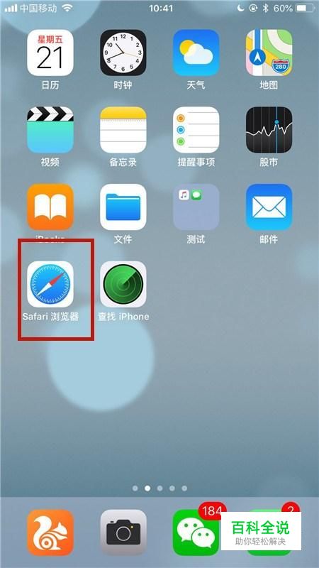 首先在我们的手机桌面上找到Safari浏览器并点击它,如下图所示。