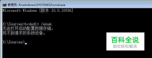 执行 bcdedit /enum 命令,如果看到如下图提示,说明引导记录已经损坏。