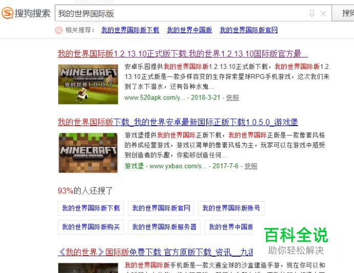 进入之后,在搜索框中填写“我的世界国际版”,点击搜索符号,进入搜索结果页面,如图所示。