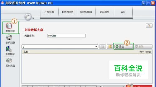 如下图,进入软件主界面,点击打开“数据刻录”选项,点击“添加”按钮。