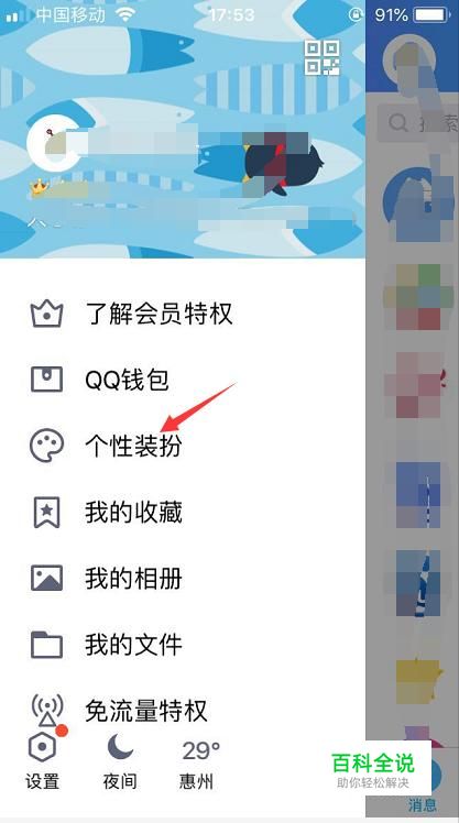 首先我们登录手机qq后点击左上角进去到个性装扮功能里面。