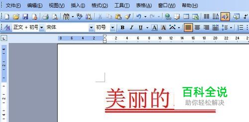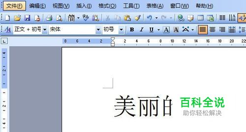 打开word软件,输入美丽的山庄几个字。字体为宋体,字号为初号。