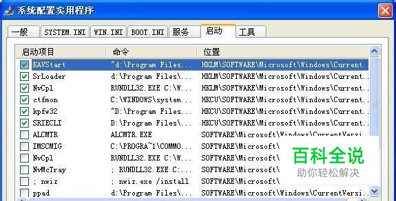 计算机在启动过程中,除了会启动相应的驱动程序外,还会启动一些程序,这些程序我们称为随机启动程序。随机启动程序不但会影响系统启动时的速度,而且还会消耗更多的计算机资源,如物理内存。 一般来说,要想删除随机启动程序,可去“开始”→“程序”→“启动”清单中删除。但是对于QQ、MSN等程序,是不能在“启动”清单中找到删除的,可以通过“开始”→“运行”窗口,输入“MsConfig”命令调用“系统配置实用程序”(如图),取消“启动”标签页中的相关启动项目程序。