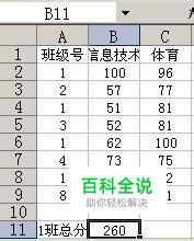 公式:=SUMIF(A:A,"=1",$B$2:$E$9) 就是对1班所有同学所有学科进行总和的统计公式。 其中, A:A代表条件区域; "=1"代表条件; $B$2:$E$9代表求和区域。 三、知识扩展 如果我们要对1班的所有同学的信息技术这个学科的成绩进行统计,如何编写公式呢? 公式为:=SUMIF(A:A,"=1",$B$2:$B$9) 如果是求2班级的数学总成绩,公式可改为::=SUMIF(A:A,"=2",$E$2:$E$9)