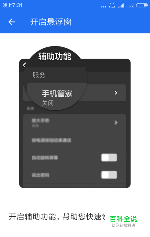 通过手机设置的辅助功能,授予手机管家权限。方法:打开手机系统设置找到辅助功能,找到手机管家软件点开启权限设置。
