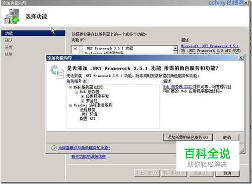打开功能安装向导,选择.NET,要求安装.NET所需要的其他角色