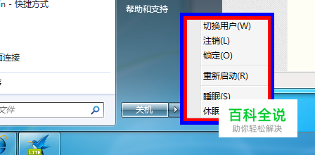 点击关机按钮旁的小箭头里面【休眠】【睡眠】【注销】和【锁定】【重新启动】【切换用户】
