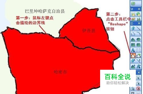 选中边界线后再点击工具栏上的"Reshape"按钮。