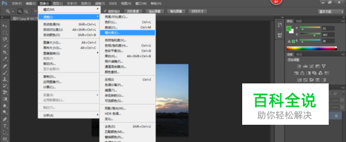 如图所示,点击工具栏中的图像,下拉菜单里面点击调整,进一步选择曝光度就会弹出设置对话框。