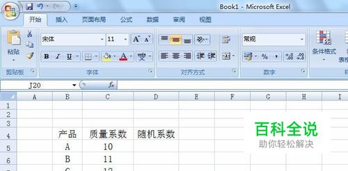 打开一个Excel的文件,输入一个简单的表格,比如产品质量随机系数数字表。需要在表中产生随机系数,放入单元格中,如下图所示。