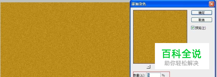 首先简单的做一个背景,新建500*400的颜色为(R185/G140/B27)的背景图层,按住alt键双击背景图层,使之变成普通图层,执行滤镜-杂色-添加杂色(数量为5;高斯分布;勾选单色),然后图像-调整-亮度/对比度(亮度为-75)点击确定。