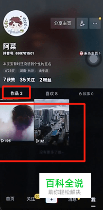 在【我】页面中,【作品】栏下找到你要合拍的短视频; (这里小伙伴需要有自己想要同框的短视频,如果作品中没有的话,需要先上传作品哦,步骤:可以先在抖音中下载一段需要用到同框短视频,然后上传即可)