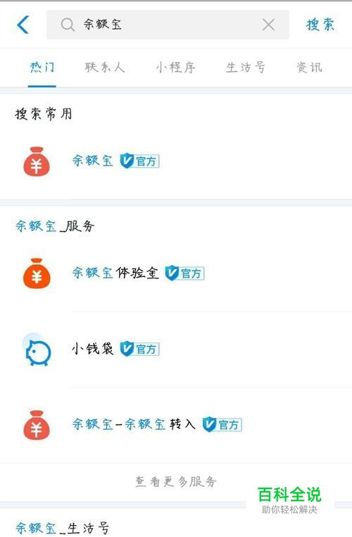 首先打开支付宝app,在最上方搜索框输入“余额宝”,进入“余额宝”界面。
