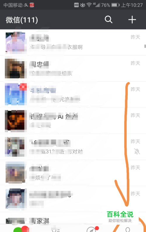 进入微信界面之后,点按界面下方箭头指向的我标志。