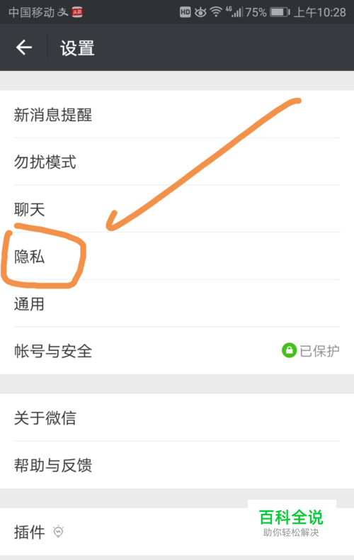 在隐私界面找到添加我的方式字样标志,点按进入。