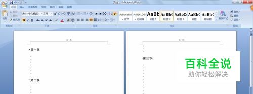 文档中当前有第一章的小节标题。可以看到第一章的两页中页眉是相同的。