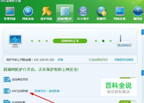 另外,我们也可以借用电脑防护类软件进行判断。打开360安全卫士,进入“流量防火墙”功能。 接着点击“日志”项,就可以查看ARP攻击记录啦。