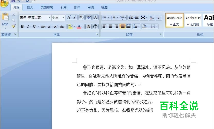 打开word2007,在里面输入下面两段话。