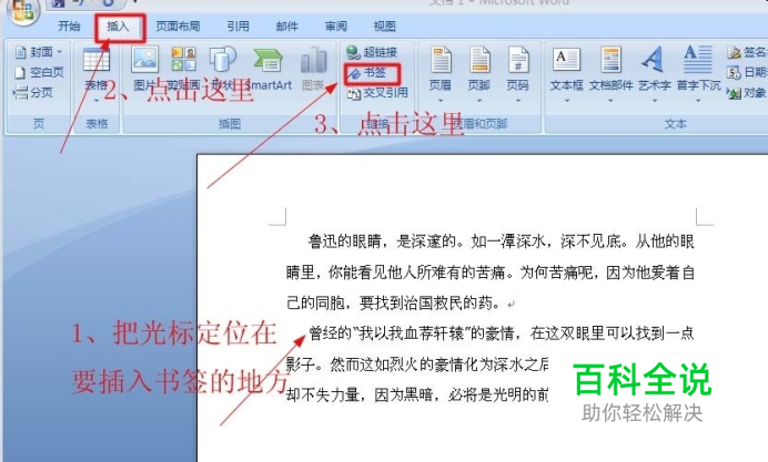 word中插入和显示书签:[1]插入书签