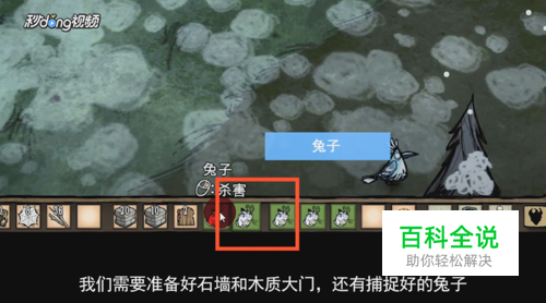 我们需要准备好石墙和木质大门,还有捕捉好的兔子。