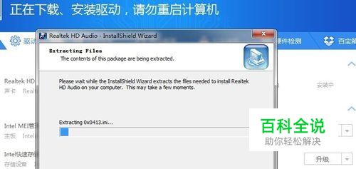 点击安装后驱动精灵就自动下载声卡驱动安装了。这样最简单的驱动精灵安装声卡驱动就完成了。