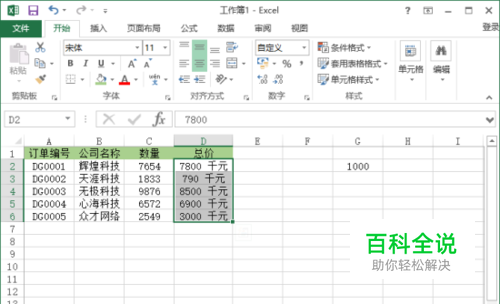 Excel2013工作表中让数据显示千元的单位