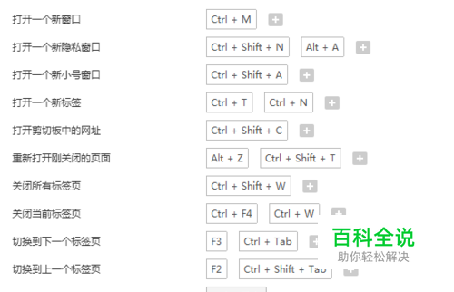 网页快捷键: 放大网页内容:Ctrl + = 缩小网页内容:Ctrl + - 将网页内容还原默认大小:Ctrl + 0 打开文件:Ctrl+o