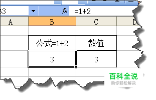 如图:我们在B3单元格里输入公式=1+2,在C3单元格里输入3