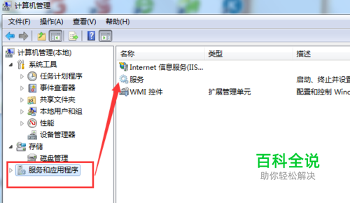 打开服务。点击 服务和应用程序,在程序的右侧,点击服务;或者 展开服务和应用程序,找到服务,点击展开服务。找到对应mysql服务,一般都是mq开头的,