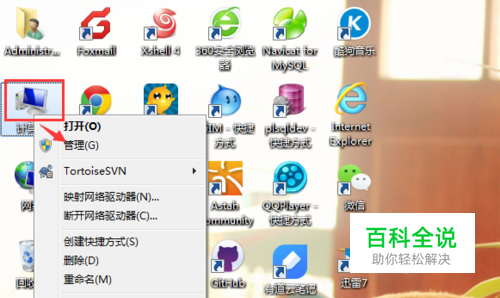 首先是打开计算机管理,一般一些服务应用都是在计算机管理中管理,打开计算机管理。在桌面我的电脑上,点击 右键,选择管理功能。