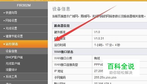 登录后,查看路由器的运行状态,如果连上网了,就可以看到wan口有外网IP等信息,如果没有连接上网络,需要想办法连接网络。