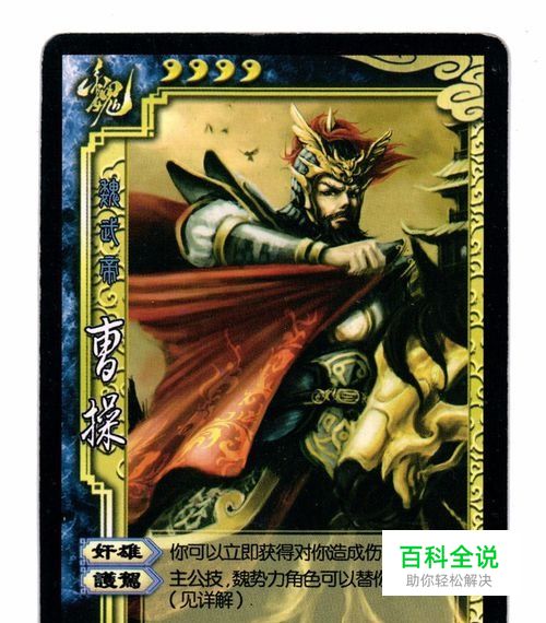 曹操 4血 奸雄——当你受到伤害后,你可以获得造成此伤害的牌。 护驾——主公技,当你需要使用/打出一张【闪】时,你可令其他魏势力角色选择是否打出【闪】(其打出的【闪】结算完毕后视为你使用/打出此【闪】)。 技能奸雄属于卖血爆发型,值得一用