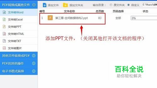 然后添加要转换的PPT幻灯片文件,在添加文件之前如果该文件是打开的,需要先关闭,以免在文件转换过程中出现错误。