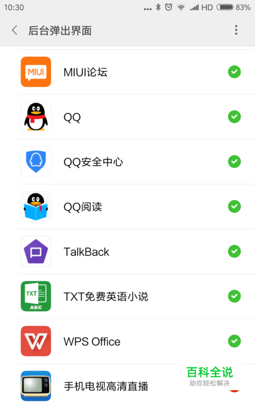 安全中心——应用管理——权限——应用权限管理——权限管理——后台弹出界面——正点闹钟打钩。