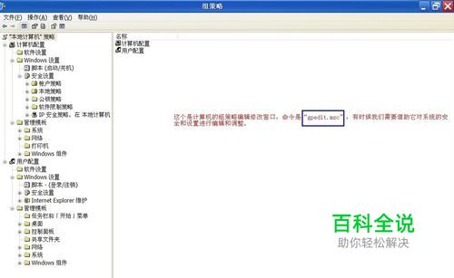 你将要看到的是“ gpedit.msc”本地组策略编辑器,它可以让你对windows XP系统以及用户组进行配置和编辑,赶紧输入一下看看吧~~