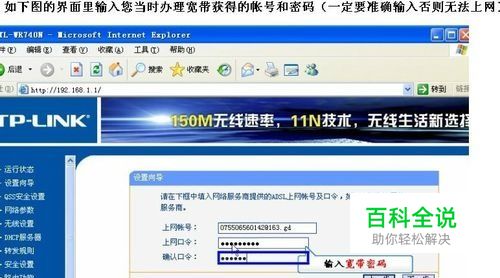 输入安装宽带提供给我们的用户名和密码,然后点击下一步。