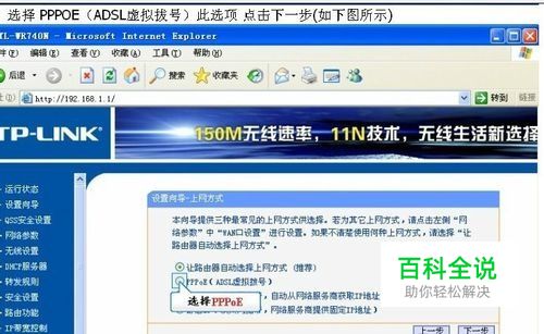 进去之后选择左侧的“设置向导”如图所示,选择PPOE,然后点击下一步。