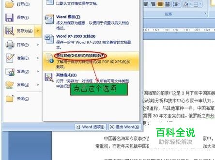 打开一个word文档,选择“office菜单”,找到“另存为”下面的“查找其他格式的加载项”,如图;