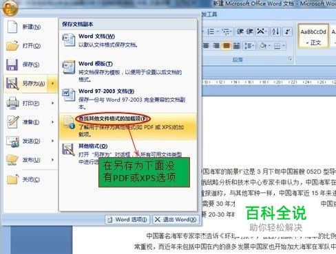 word里面没有“PDF或XPS选项”怎么办