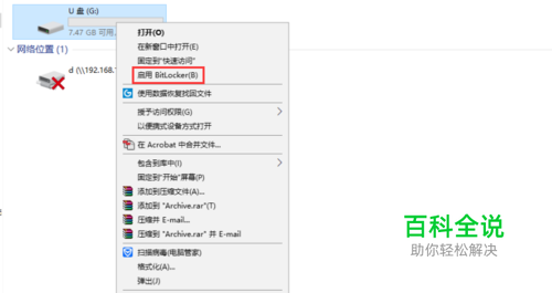 这是window原生的加密系统,加密方式虽然复杂但是也不失为一个解决办法,插入U盘,双击此电脑,在弹出的窗口中找到U盘盘符,在其上方点击右键,在弹出的菜单中点击启动bitlocker。