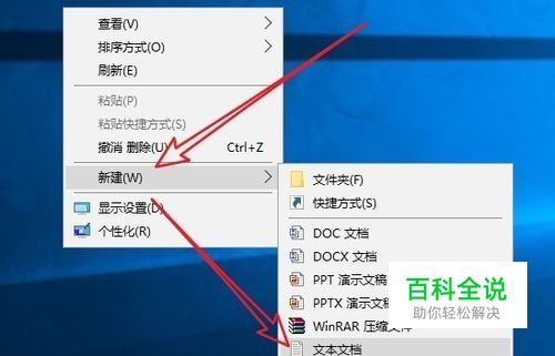 在Windows10系统桌面,右键点击桌面空白位置,在弹出菜单中选择“新建/ 文本文档”菜单项。
