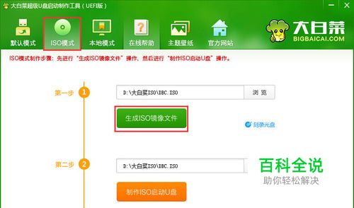 切换到“ISO模式”然后点击ISO模式下的第一步“生成ISO镜像文件”进入下一步操作。