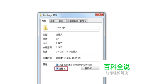 在属性窗口的“ 常规”选项卡,可以看到有一个“ 隐藏”属性选项,将其勾选,文件或文件夹就会隐藏,反之,Windows就会将其显示出来。接下来我们就来看看怎样设置Windows显示所有即使设置了隐藏属性的文件和文件夹。