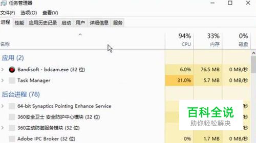 首先同时按住“Ctrl”+“Alt”+“Del”键,打开任务管理器,点击“详细信息”按钮
