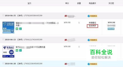 这样就进入了我们已买到的宝贝的列表页面,在已买到的宝贝的列表页面我们可以看到,基本上所有的商品的商品操作那一个列表下都有投诉商家的便捷链接。