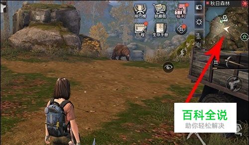 乘坐直升机来到秋日森林,在搜集资源的过程中遇到熊,接着点击地图,位置见下图