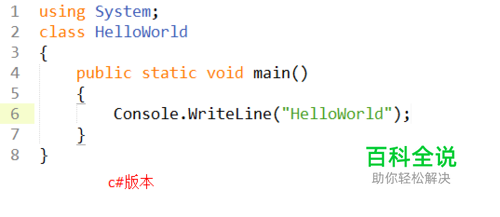3.C# using System; class HelloWorld { public static void Main() { Console.WriteLine("Helloworld!"); } }