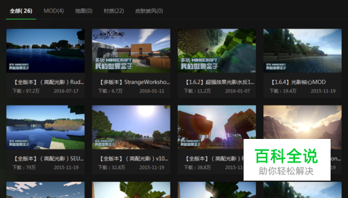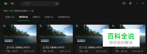 首先我们在使用光影前,先要在游戏客户端上必须安装光影核心MOD。在多玩盒子里的“资源宝库”处搜索该MOD即可找到,然后将它下载并安装到游戏客户端上。