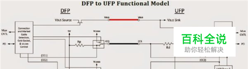 工作主从机连接如下。 DFP为主,UFP为从,DRP可为主也可为从,取决于接什么。 DFP的CC脚有上拉电阻Rp,UFP有下拉电阻Rd。未连接时,DFP的VBUS无输出。 当CC端相连,DFP的CC脚会检测到UFP的下拉电阻Rd,说明连接上,DFP打开VBus开关开始供电。而哪个CC脚(CC1,CC2)检测到下拉电阻就确定接口插入的方向,顺便切换RX/TX。