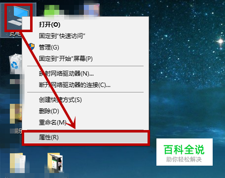 桌面右击【此电脑】,在右键菜单选择【属性】选项